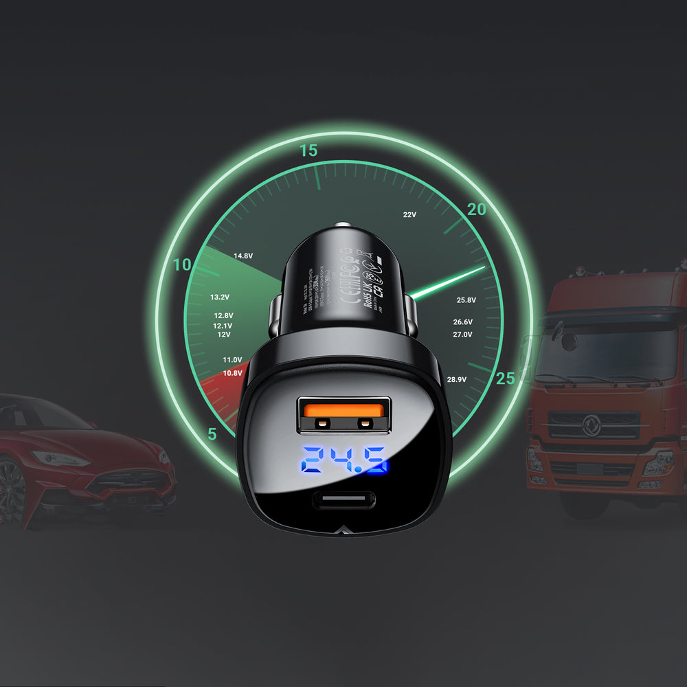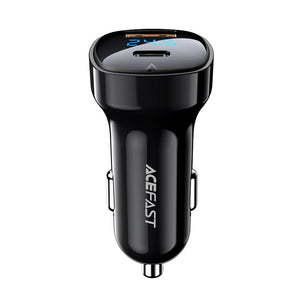 Acefast fast car charger. It has 2 ports, USB Type C and USB. The first USB Type C plug allows you to charge with a maximum power of 36W, and a USB plug up to 30W. Allows for quick charging, among others in PPS, Power Delivery, Quick Charge 3.0, AFC and FCP standards. 2 devices can be connected to it at the same time. It is made of fireproof PC material. It has been equipped with many protections, such as overheating, overvoltage, high voltage or overload.