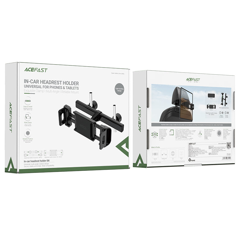 Acefast car headrest holder for phone and tablet (135-230mm wide) black (D8 black)