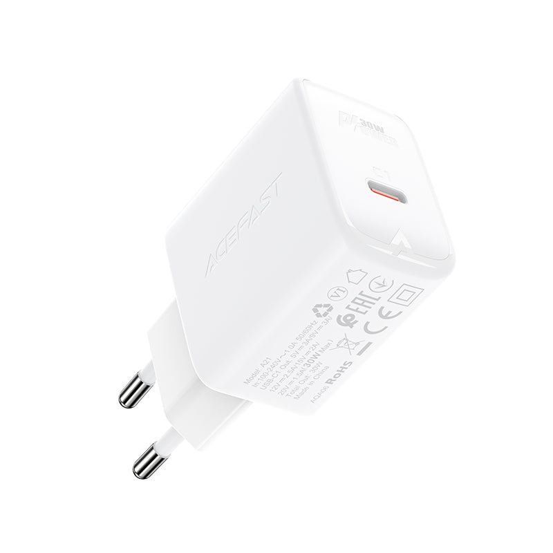Acefast charger GaN USB Type C 30W, PD, QC 3.0, AFC, FCP white (A21 white)