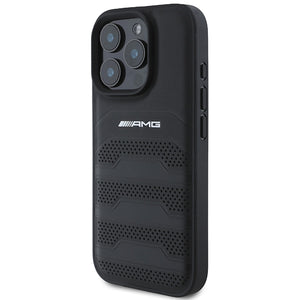 AMG Leather Debossed Lines Black Logo iPhone 16 Pro Max Case - Black