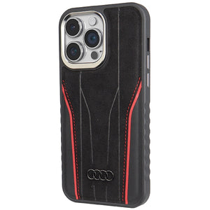 Audi Genuine Leather case with MagSafe for iPhone 15 Pro Max - black and red