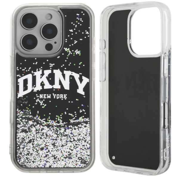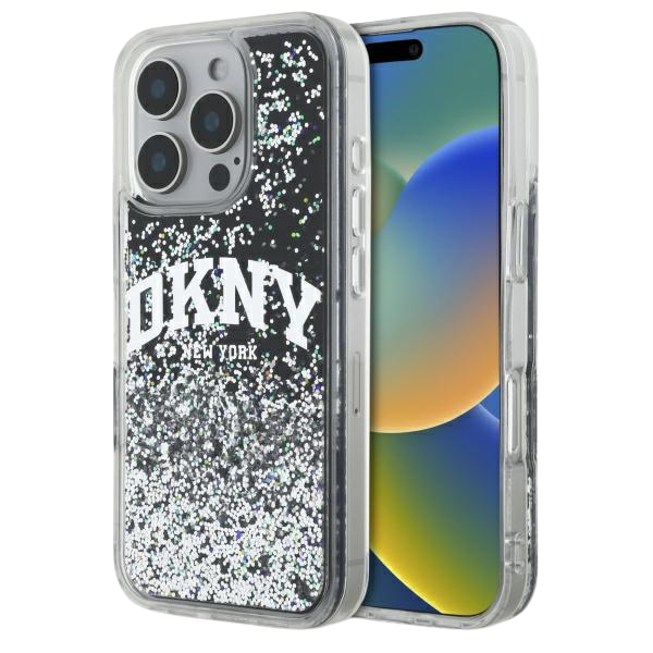 DKNY DKHCP16LLBNAEK iPhone 16 Pro 6.3" black/black hardcase Liquid Glitter Arch Logo