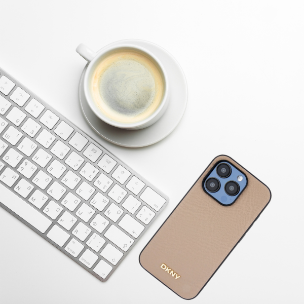 DKNY Grained Metal Logo MagSafe iPhone 15 Pro Max Case - Beige