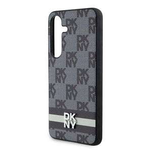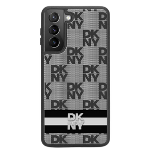 DKNY Leather Checkered Mono Pattern & Printed Stripes Case for Samsung Galaxy S24 - Black