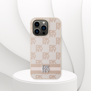 Each case is decorated with a unique motif of the initials of the exclusive DKNY fashion house, which form an unusual check pattern. This pattern is very characteristic and attracts attention thanks to its unique design. An additional decoration is wide stripes in the color of the cover, which achieves harmony and elegance. The whole is topped with a metal DKNY logo, which emphasizes the prestige and authenticity of the collection.