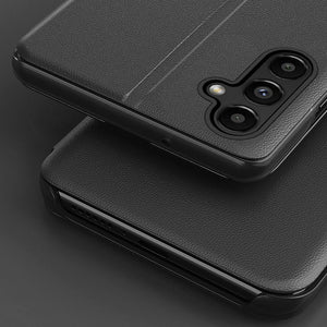 The Eco Leather View Case is the perfect protection for your Samsung Galaxy S23+ . Made of elegant ecological leather and strong PC material, the case will provide your device with full protection against dirt, scratches and damage from a fall. Thanks to the cutouts for the phone connectors, you can freely connect the charger and the headset, as well as use the volume buttons, on / off (lock), loudspeaker, camera and flash. The back of the cover also has a stand function, thanks to which you can watch movies on your phone or make a video call without holding the device in your hand. This elegant cover from the Eco Leather View Case series is not only protection, but also a stylish addition to your device.
