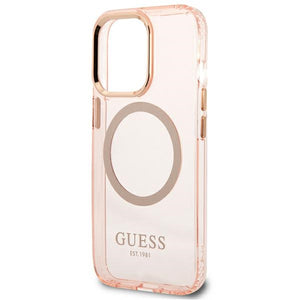 Guess GUHMP13LHTCMP iPhone 13 Pro / 13 6.1" pink/pink hard case Gold Outline Translucent MagSafe