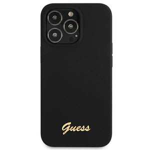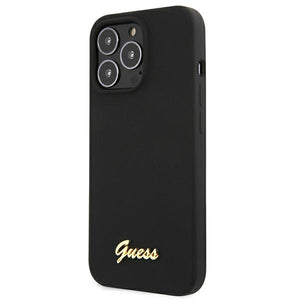 Guess GUHMP13LLSLMGBK iPhone 13 Pro / 13 6.1" black/black hardcase Silicone Script Gold Logo MagSafe