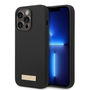 Guess GUHMP14LSBPLK iPhone 14 Pro 6.1" black/black hard case Silicone Logo Plate MagSafe