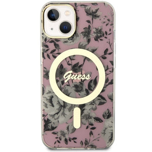 Guess GUHMP14MHCFWSP iPhone 14 Plus 6.7" pink/pink hardcase Flower MagSafe