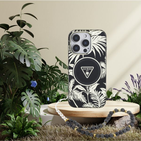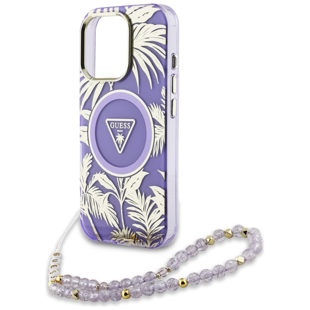 Guess Palm Trees Triangle Pearl Strap MagSafe case for iPhone 16 Pro