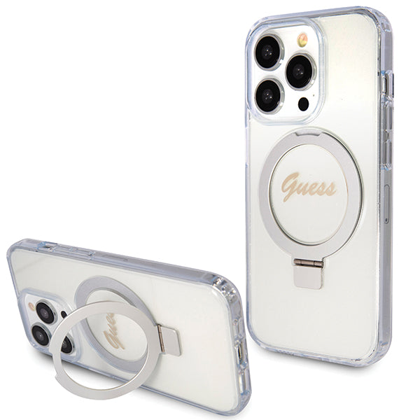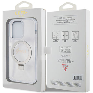 Guess Ring Stand Script Glitter MagSafe case for iPhone 15 Pro