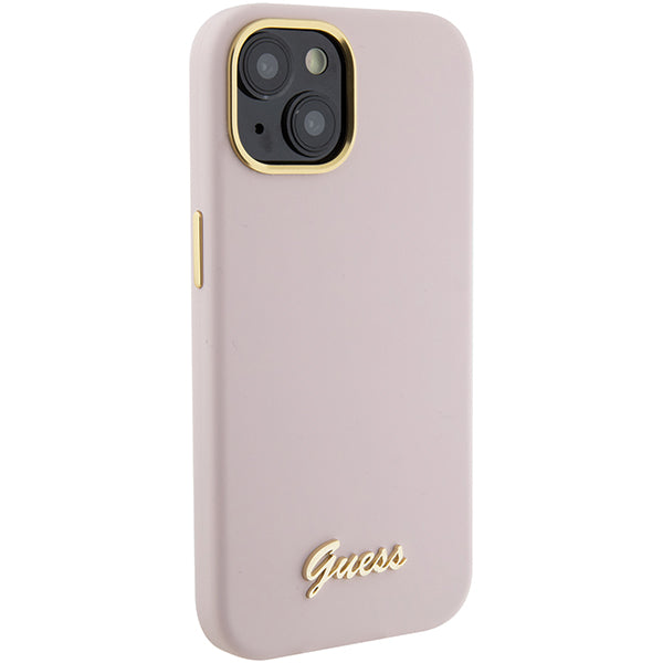 Guess Silicone Script Metal Logo & Frame case for iPhone 15 Pro Max - pink