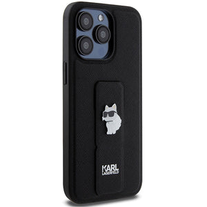 Karl Lagerfeld Gripstand Saffiano Choupette Pins Case for iPhone 13 Pro / 13 - Black