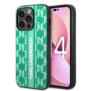 Karl Lagerfeld Monogram Stripe iPhone 14 Pro Case - Green
