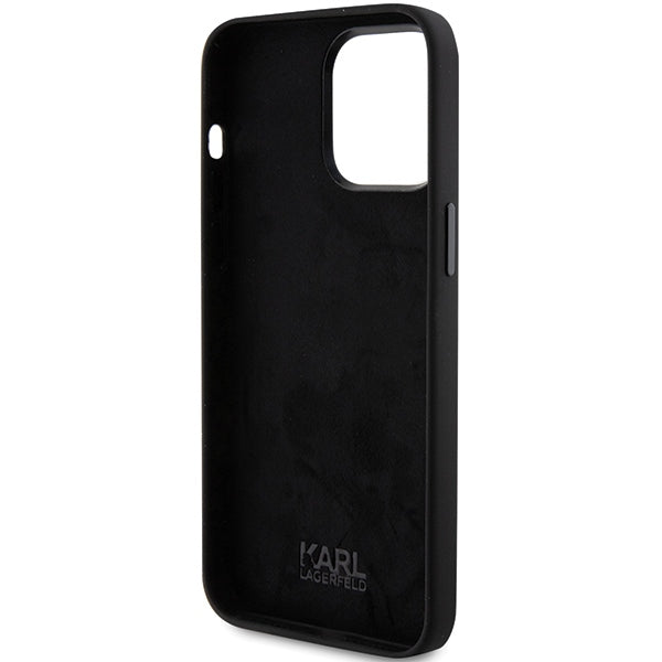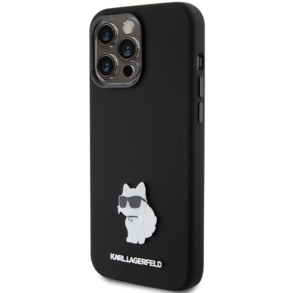 Karl Lagerfeld Silicone Choupette Metal Pin case for iPhone 15 Pro Max - black