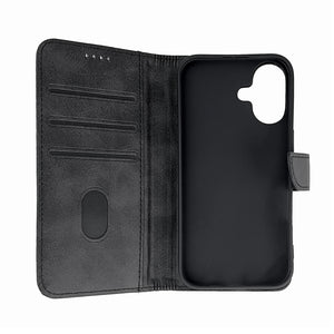 Leather Book Case for iPhone 16 - black