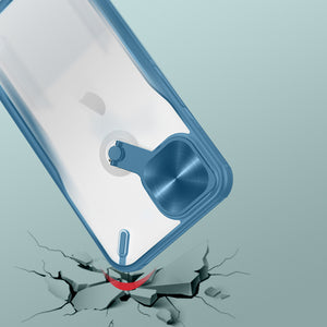 The cover consists of two connected parts. The PC back panel is stiff and is responsible for the stability of the entire cover. The flexible TPU frame covers the sides of the phone, absorbs impact energy and protects the screen and camera by protruding above the edge of the device.