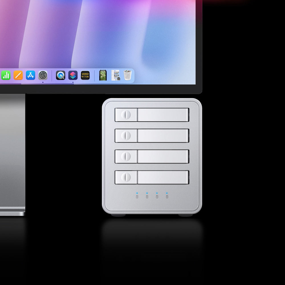 - Package contents: disk array, 1m 40Gbps USB-C to USB-C cable, power supply, user manual