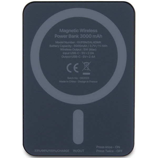 The 3,000 mAh wireless Power Bank will certainly provide you with additional power for your phone whenever you need it. The battery capacity is fully sufficient to charge your smartphone's battery. Small dimensions and compact size make the device fit even into a small purse or pocket.