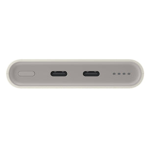 The beige finish adds elegance, and the compact design makes it easy to take the power bank with you on any trip. Its lightness and size make it unnoticeable in your luggage.