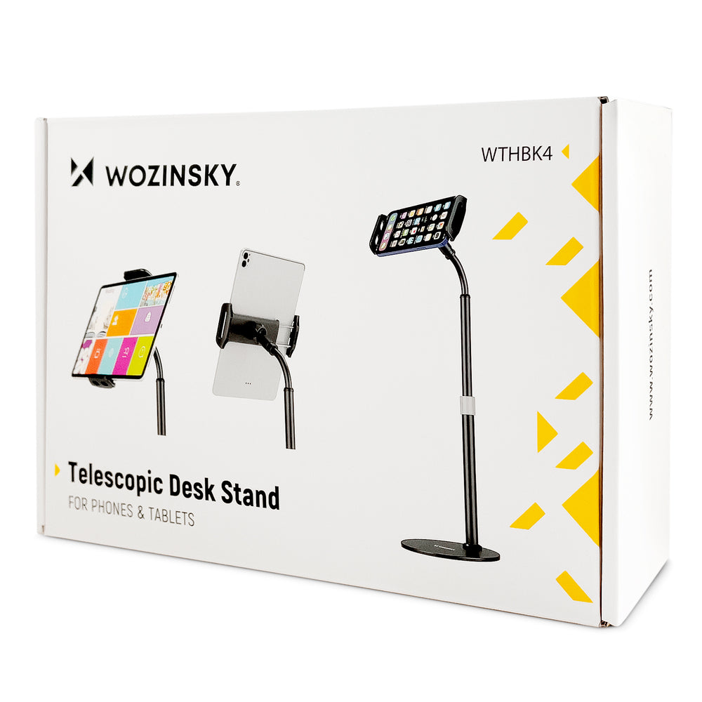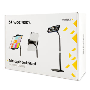 Are you looking for a universal and easy-to-use tablet or phone stand for your desk? Meet Wozinsky WTHBK4. It is a comfortable and stable gadget that will work both in the office and at home . It was made of durable materials, it will hold smartphones and tablets with a diagonal of 4.7-11 inches . It has a stable, well-balanced base and strong jaws that can rotate a full 360 degrees. The Wozinsky WTHBK4 tablet and phone stand will adjust to your height - it has an adjustable, telescopic arm.