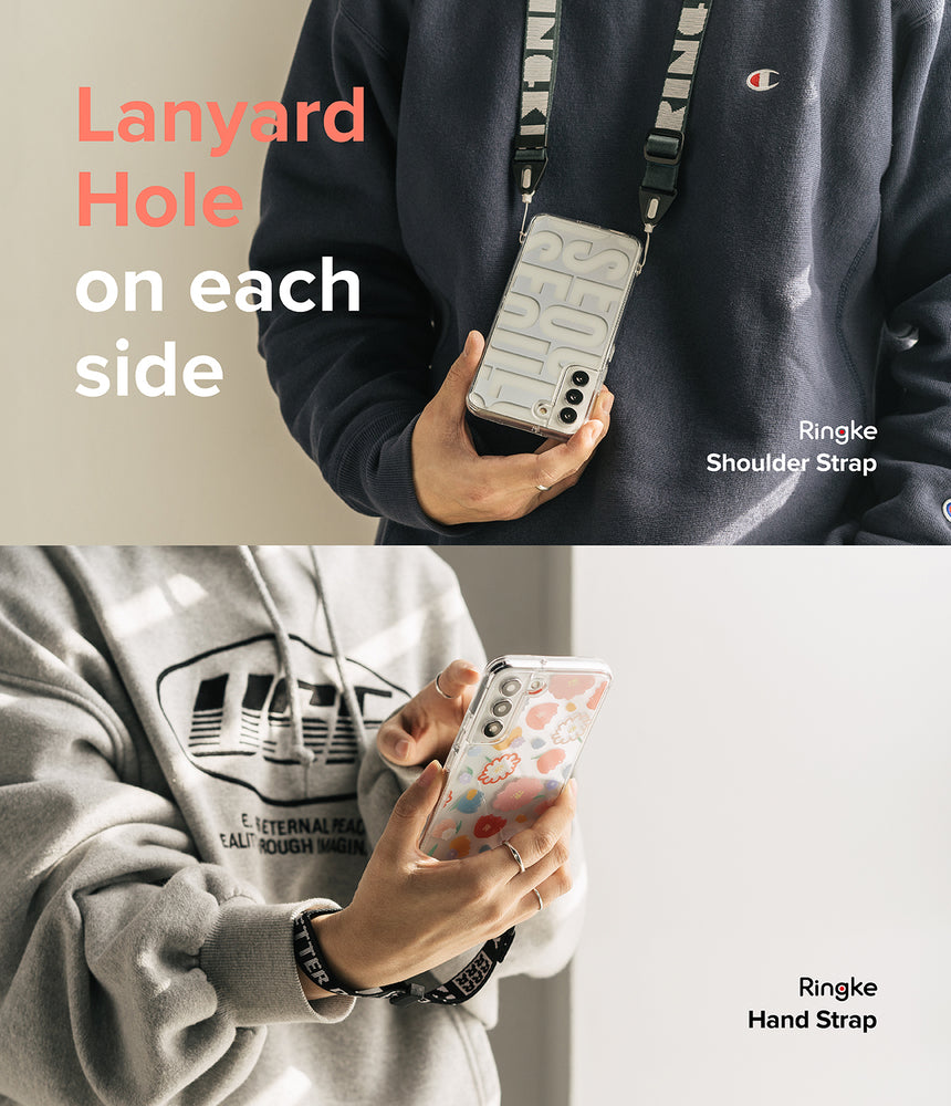 There is a place on the side of the cover that allows you to attach a lanyard. You can hang the phone on your wrist or neck.