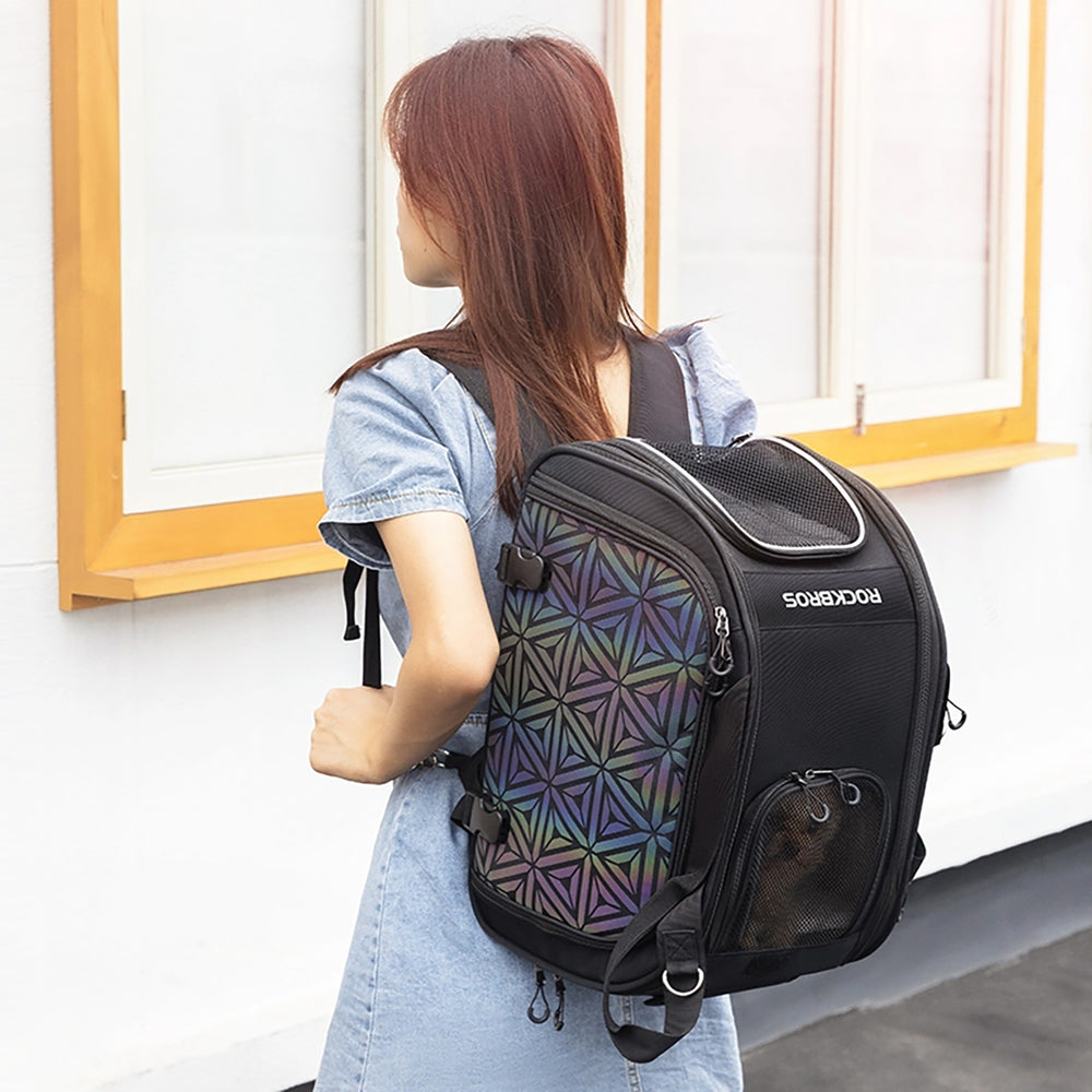 The Rockbros 30140028001 bag offers five carrying methods: mounting on a bike, carrying on the back, on the shoulder and attaching to a suitcase. This is an ideal solution for active pet owners who often change the way they travel.
