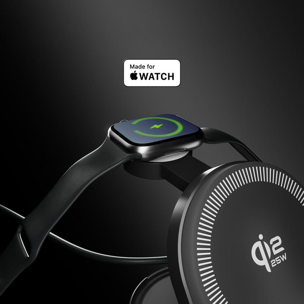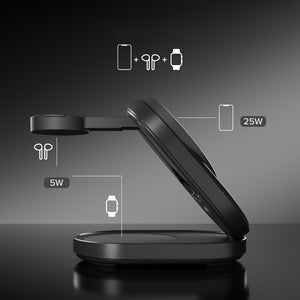 SBS Qi2.2 25W Inductive 3-in-1 Foldable Charging Station with MFI Certificate - Black