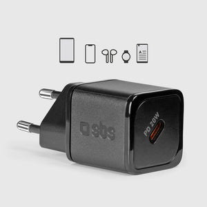 SBS TETRGAN1C20K 20W GaN USB-C Wall Charger with Power Delivery - Black