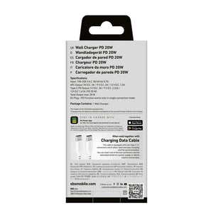SBS TETRPD20W 20W USB-A USB-C Wall Charger with Power Delivery - White