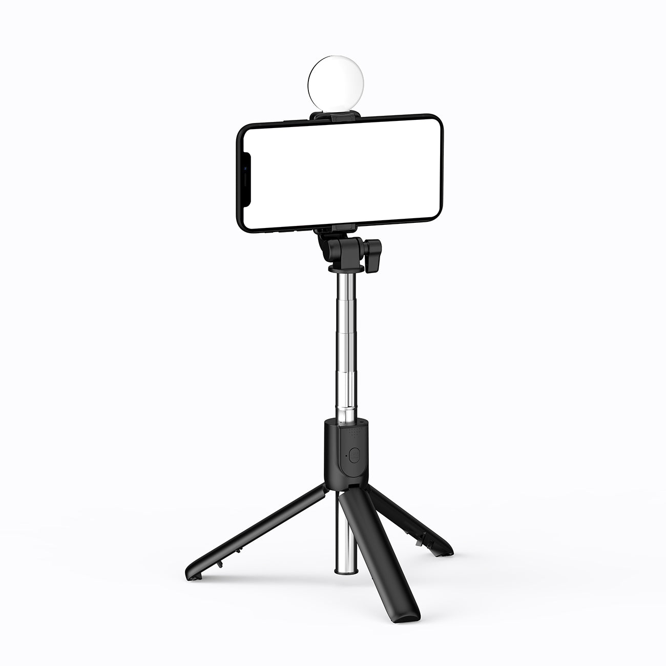 Selfie stick WR1YXS telescopic tripod 0.71m with round lamp - black