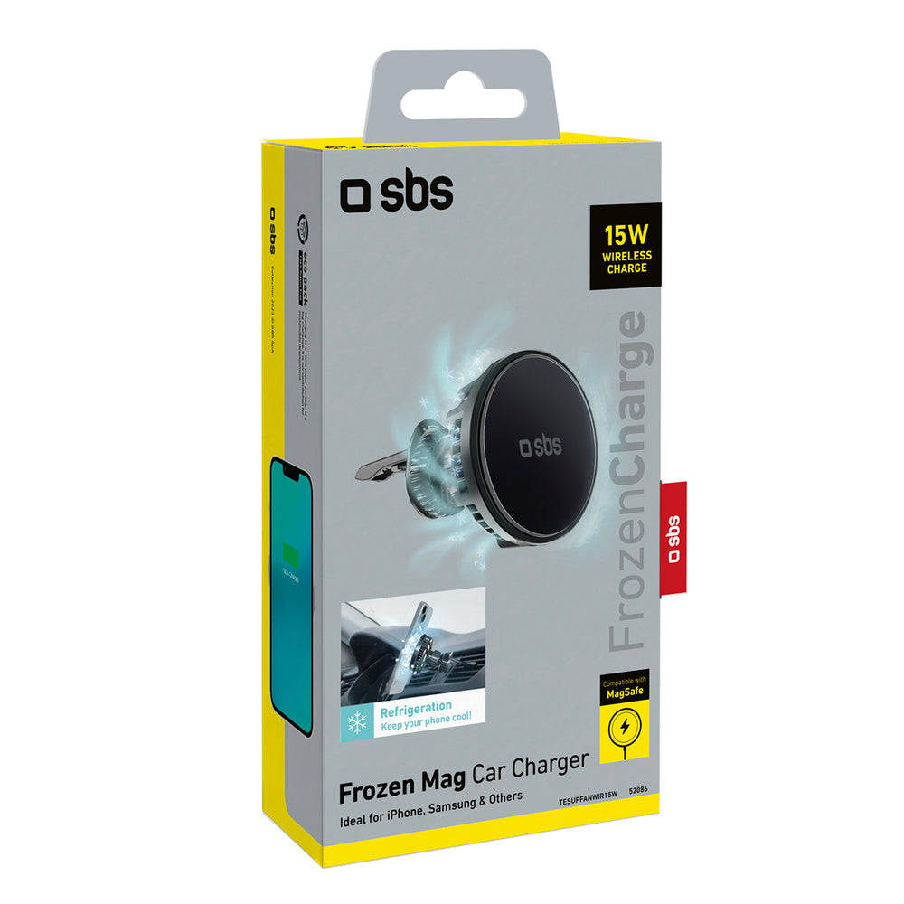 Smartphone holder with inductive charger SBS TESUPFANWIR15W 15W for air vent, with cooling - black