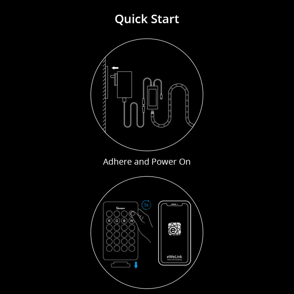 Thanks to it, you can create a remotely controlled LED lighting in your home that you can install anywhere. The LEDs are controlled by the eWeLink application that must be installed on the phone. It's free and available for Android and iOS.