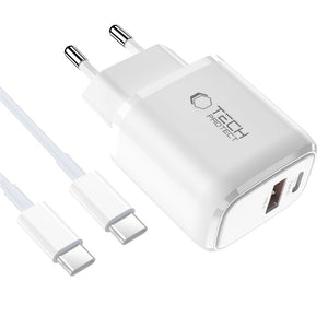 Tech-Protect NCA30 PD 30W QC3.0 USB-A / USB-C Wall Charger + USB-C / USB-C Cable 100cm - White