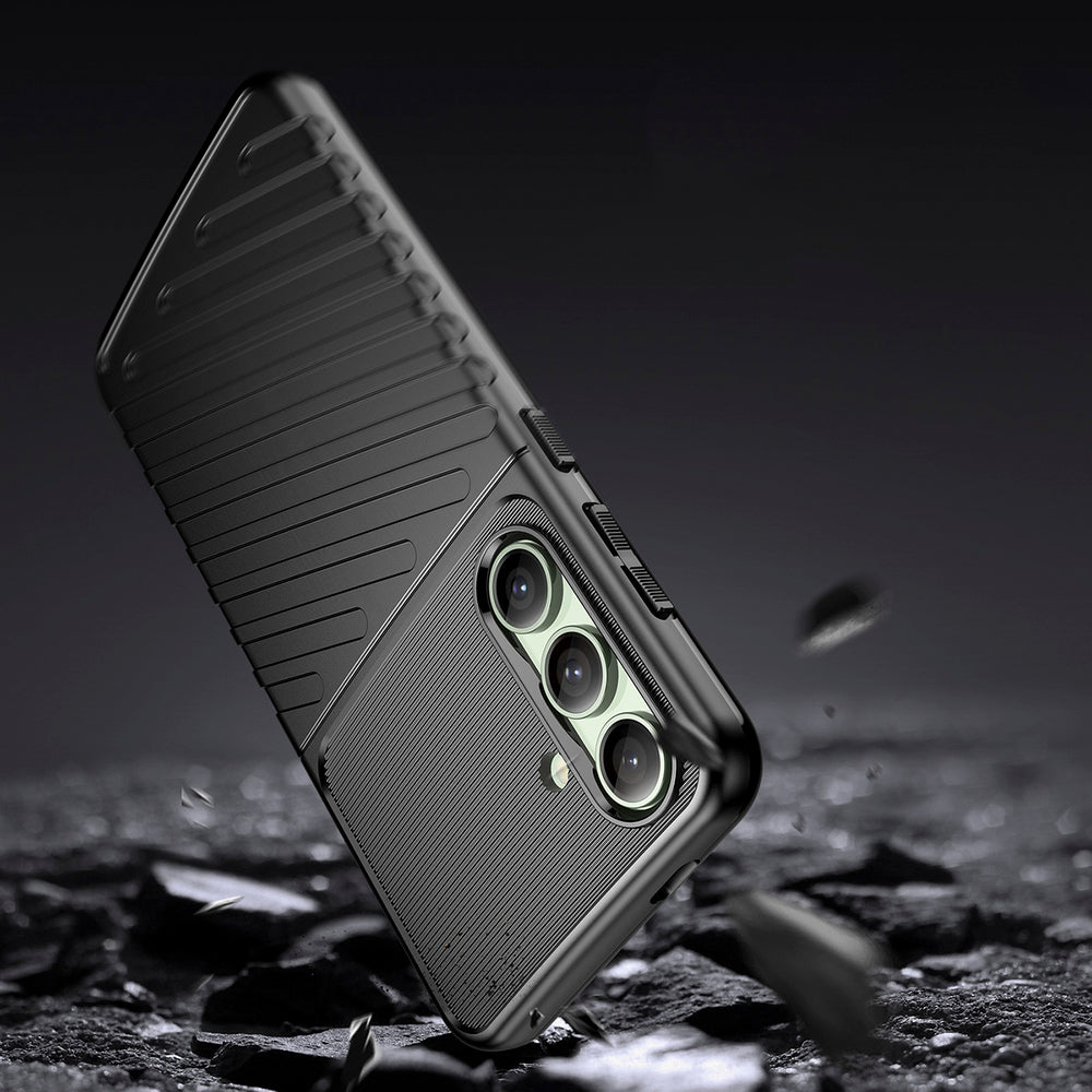 Case from the series Thunder Case is made of thermoplastic and durable material, which provides it with good flexibility . The cover is fitted to Samsung Galaxy S24 FE , perfectly protects the phone from damage due to falls or scratches (for example, from keys carried in the pocket). Raised edges around the screen and rear camera protect the phone from scratching these elements when it lies on a flat surface. It has responsive buttons and cutouts for ports. Ideal for people who value style, quality and want to take care of their device.