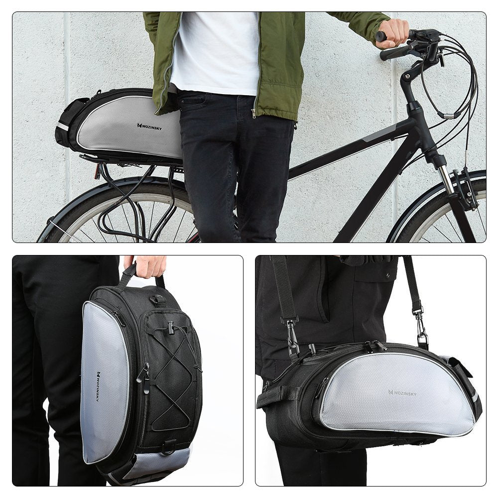 The Wozinsky trunk bag is perfect for any trip, regardless of the weather or time of day. It features large reflective elements that increase your visibility at night.