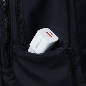 The Wozinsky CMWCW wall charger offers two USB ports: USB-A and USB-C, allowing you to charge two devices simultaneously. This is especially useful when you need to quickly charge both your phone and tablet or other devices.