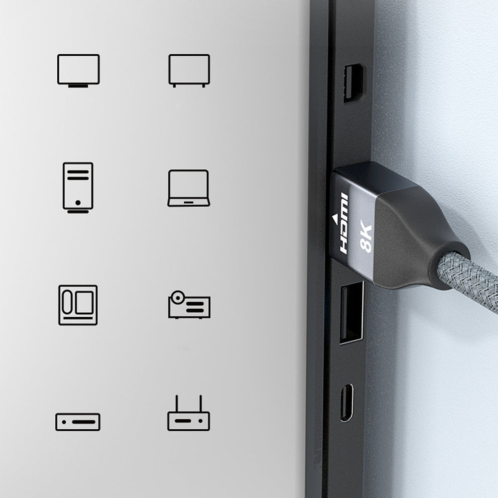 - Once connected, it adjusts to the best possible image quality . The cable supports 8K, 4K, or 2K resolution. These parameters are confirmed by the HDMI 2.1 certification.