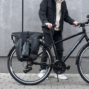 This trunk bag has a very large capacity – a whopping 25 liters ! You can fit a lot of your belongings in it: clothes, a bike helmet, a water bottle, but also electronics and bike repair equipment. Inside the trunk bag, there's a pocket that makes it easy to find specific items .