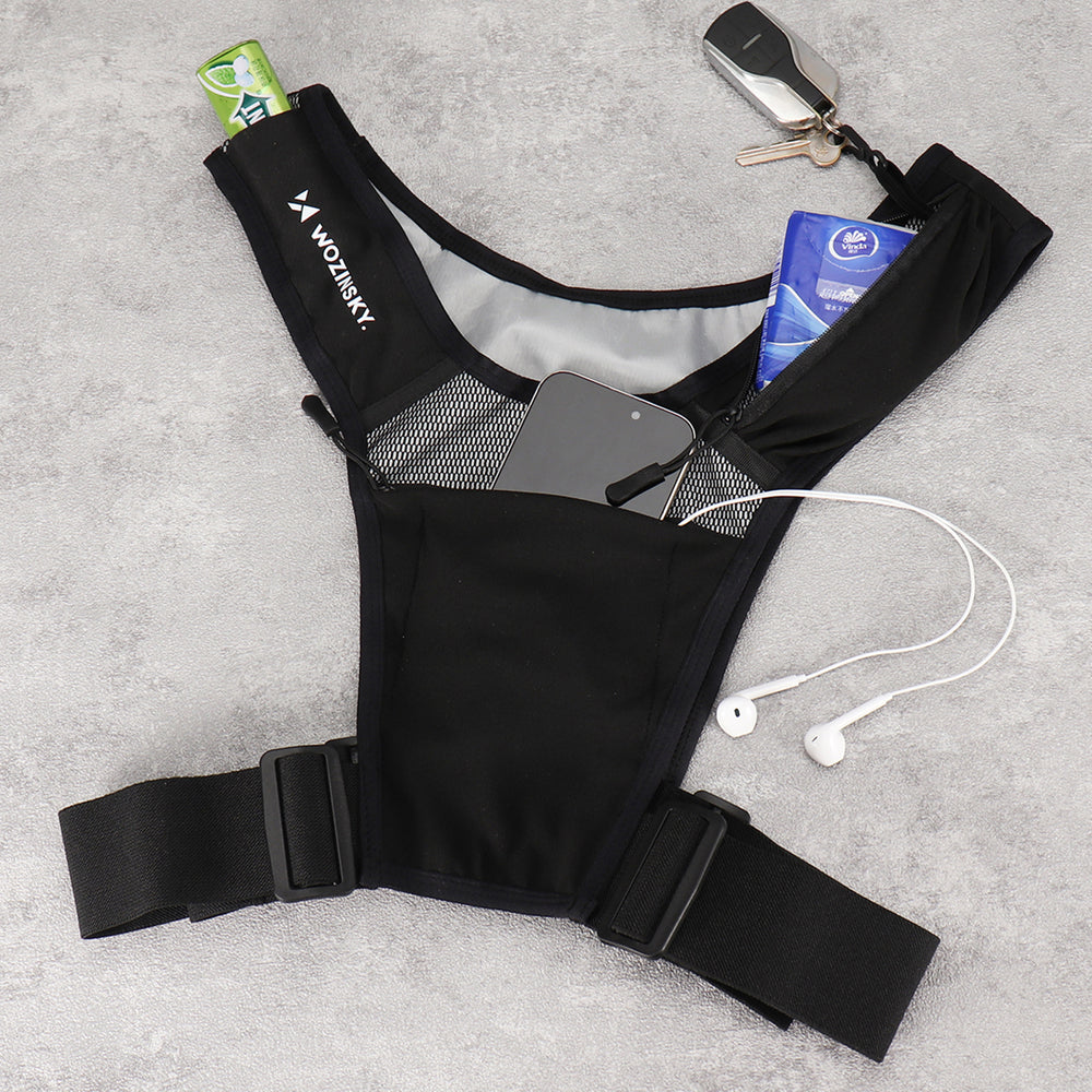 The Wozinsky WKDB1 vest has three zipped pockets that can easily hold a phone, keys, headphones or energy gels. It's the perfect solution for people who want to have all the necessary items with them during training.