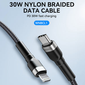 The Wozinsky WNBCL1 cable provides lightning-fast charging of Apple devices thanks to USB-C to Lightning technology with 30W Power Delivery function. Designed to withstand heavy use: Its nylon sheath is up to 10 times more durable than standard cables. Reliability in all conditions, high quality of data transmission and strong, durable connectors make this cable an indispensable accessory for every user of Apple devices.