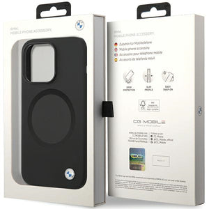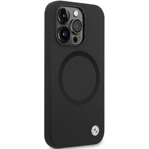 BMW BMHMP14LSILBK2 dėklas, skirtas „iPhone 14 Pro“ – juodas, su „MagSafe“ skysto silikono korpusu