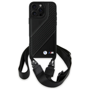 BMW M leidimo anglies pluošto juostelių ir dirželio dėklas, skirtas iPhone 16 Pro Max – juodas