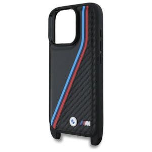 BMW M Edition Carbon Tricolor Lines & Strap Case for iPhone 16 Pro - Black