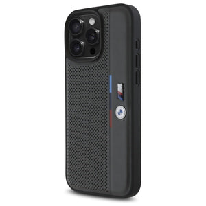 BMW M perforuotas trispalvis iPhone 16 Pro dėklas su detalių linija – tamsiai pilkas