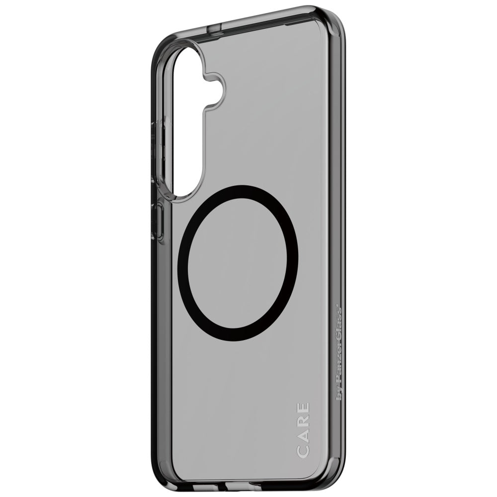 „CARE by PanzerGlass Flagship Urban Combat“ juodas QI dėklas, skirtas „Samsung Galaxy S25+“ – pusiau permatomas dūmų spalvos