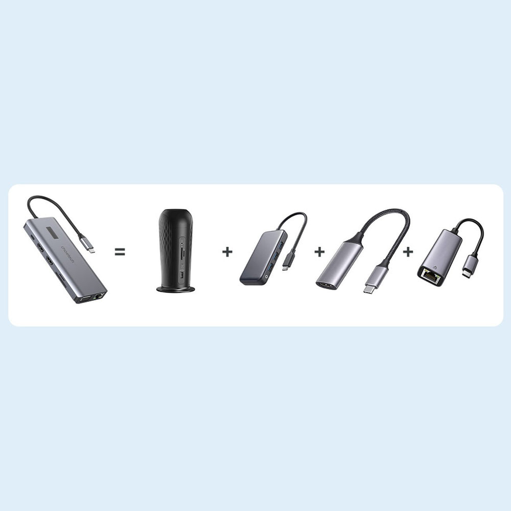 Pradžia Choetech multifunctional HUB with display 12in1 USB-C to USB-C / USB-A / HDMI / VGA / AUX / SD / TF gray (HUB-M26)