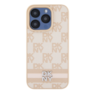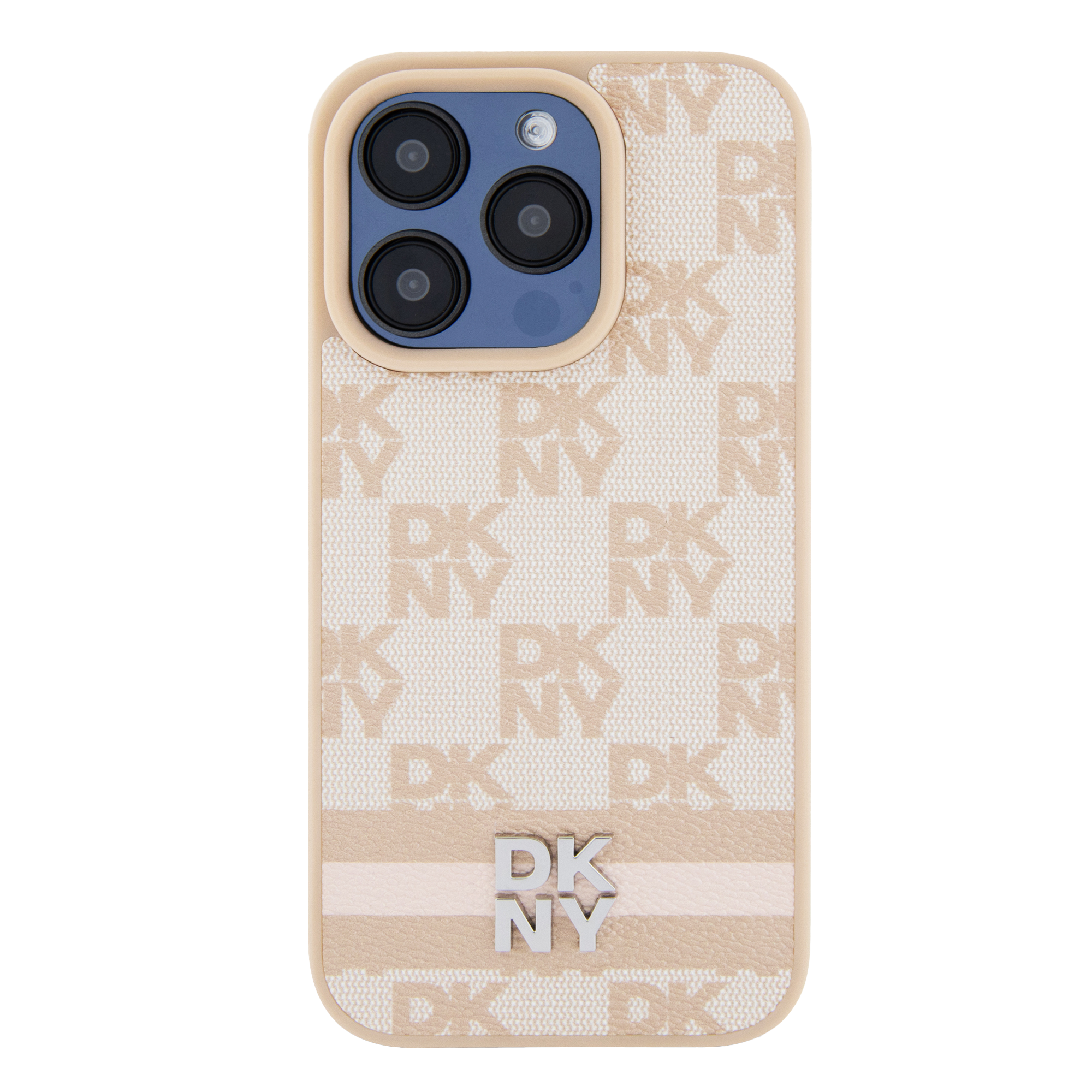 DKNY Leather Checkered Mono Pattern & Printed Stripes case for iPhone 15 Pro - pink