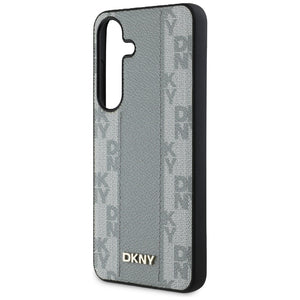 DKNY odinis languoto rašto „MagSafe“ dėklas, skirtas „Samsung Galaxy S25“, pilkšvas